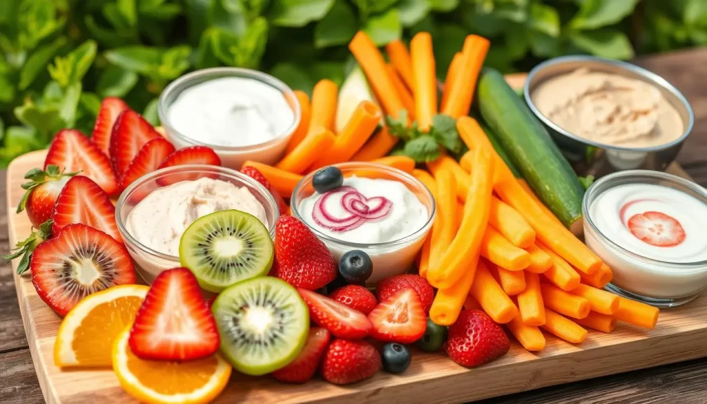 • Fresh fruit or cut veggies with guacamole or ranch dip